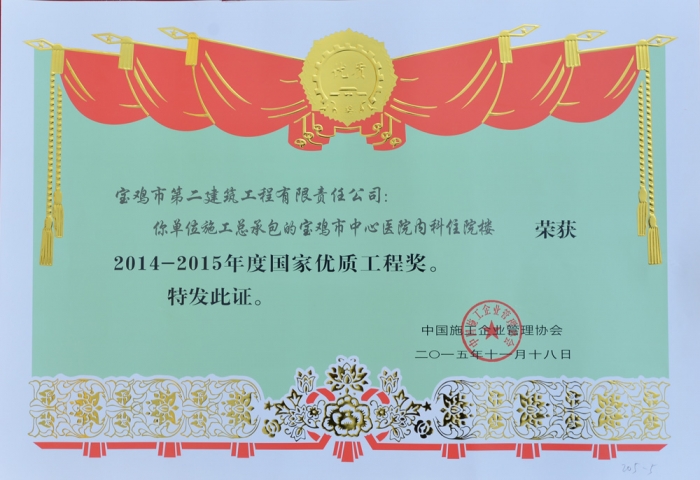 國家優(yōu)質(zhì)工程獎(寶雞市中心醫(yī)院?內(nèi)科住院樓)